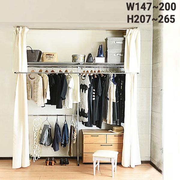 ウォークイン突っ張りハンガー 幅111 200cm ハイタイプ 高さ218 280 上下カーテン付き 通販 ディノス