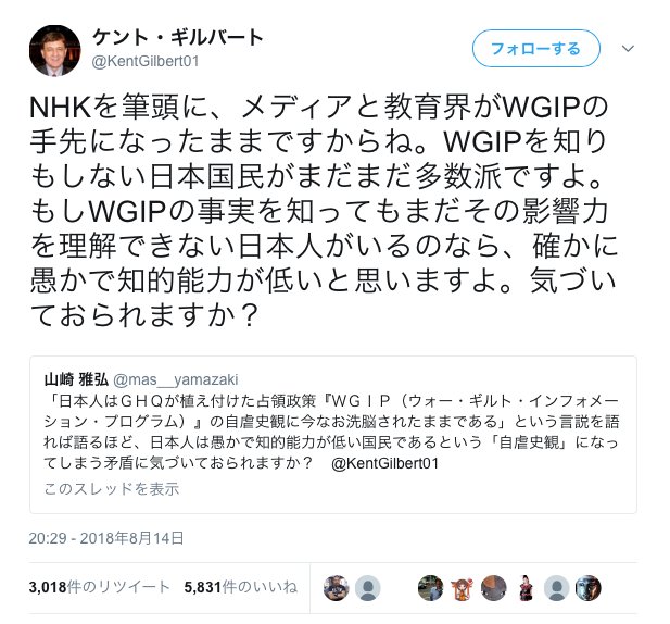 ゴッペンハイム On Twitter ま アメリカの犬と言っても 過去のアメリカ Ghqの亡霊の犬といったところか 戦後期アメリカが行った自虐洗脳政策ウォーギルトインフォメーションプログラム Wgip に縛られ続ける憐れなアメリカの犬 マスゴミや教育会など 権威に調教され