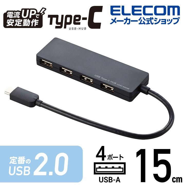 エレコム Usb Type C タイプc Typec 接続 Usb 2 0 ハブ Aメス 4ポート Usb ハブ バスパワー 15cm ケーブル ブラック ブラック U2hc A429bbk エレコムダイレクトショップ 通販 Paypayモール