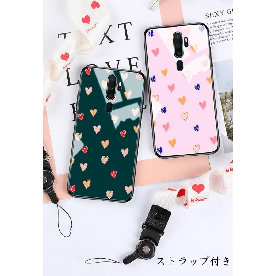 Oppo A5 2020 A9 2020 ケース カバー 背面強化ガラス 背面カバー オッポ おっぽ リング付き ストラップ付き A5 2020 かわいい ス 送料無料 スマホケース専門店クールリバー