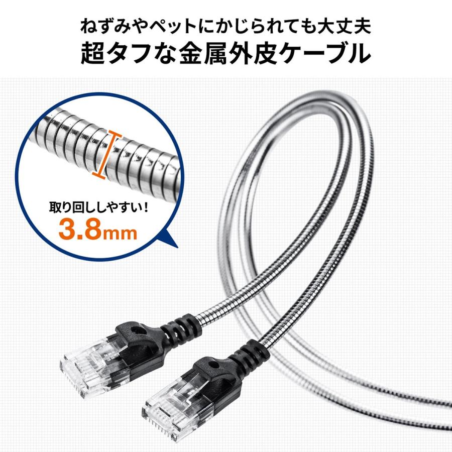 Lanケーブル カテゴリ6a 1m 金属製外皮 ねずみ ペット対策 ツメ折れ防止カバー やわらかい シルバー 500 Lan6amt01の販売商品 通販ならサンワダイレクト