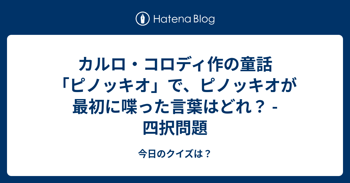 カルロ コロディ作の童話 ピノッキオ で ピノッキオが最初に喋った言葉はどれ 四択問題 今日のクイズは